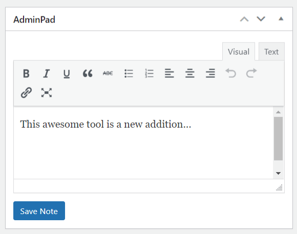 Please get in touch if you’d like to add an “AdminPad” to your website Dashboard.