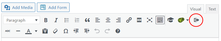 Next, in your WordPress text editor, place the mouse where you want the button to appear. Type the words you wish to use as the button label ( ex. Read More ). Highlight that text and click the “arrow” icon above the text editor – see below: